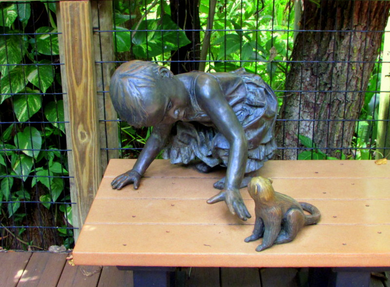 The girl in this picture is enjoying a rare opportunity to observe a wild primate up close; this encounter was fun for all but–sad to say–involved neither a real girl nor an actually monkey.